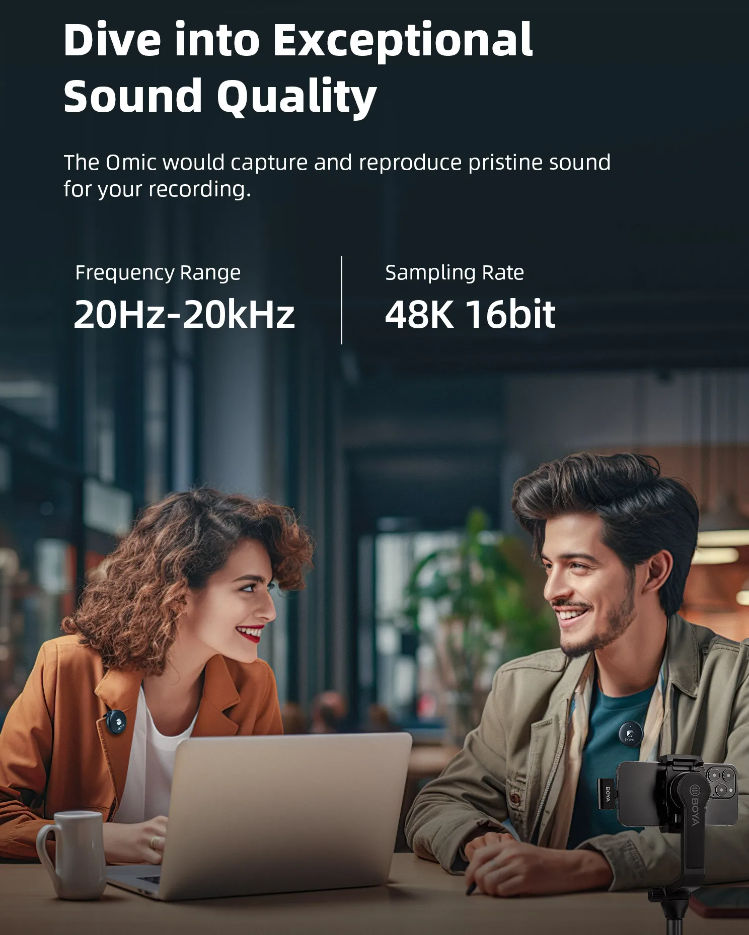 One of the standout features of the BOYA Omic-D is its ability to deliver 48kHz HD audio when noise cancellation is enabled. This ensures that your recordings are crystal clear and free from unwanted background noise, making post-production editing a breeze. Additionally, its wide-range 20-20,000Hz frequency response guarantees exceptional sound quality across the entire spectrum, from deep bass tones to crisp high frequencies.