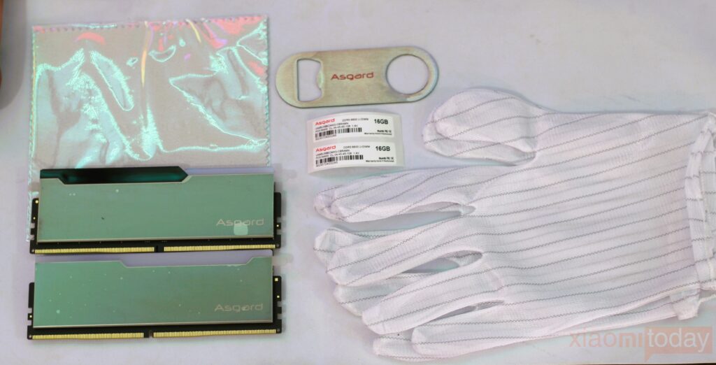It’s rare to see today’s memory come with such generous gifts and It has the look of a high-end product. A pair of anti-static gloves, a cleaning cloth, and a bottle opener. The size of the anti-static gloves is on the small side. For a tall and tall boy like me, these anti-static gloves are a bit tight to put on. The cleaning cloth is for users to wipe fingerprints on the surface of the memory heat sink, because the memory heat sink has a mirror appearance, and the mirror appearance is really easy to attract fingerprints.