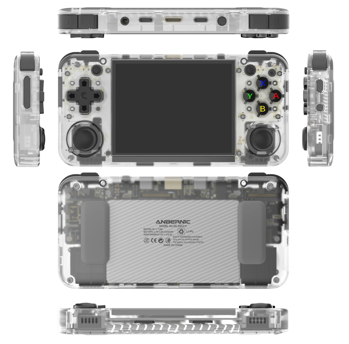 The ANBERNIC RG35XX H boasts a compact and stylish design, featuring a 3.5-inch IPS screen with a resolution of 640×480. This high-resolution display ensures vibrant and clear visuals, making every game look stunning. The console is comfortable to hold, with well-placed buttons that provide a responsive and tactile gaming experience. The sleek and modern aesthetics combined with its ergonomic design make it a pleasure to use for extended gaming sessions.