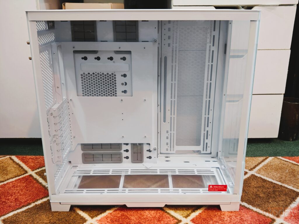 Measuring 522×304×531.9mm and weighing 17kg, this case is undeniably substantial. Yet, its transparent view offers a unique twist, revealing the inner workings and mitigating its seeming enormity. Designed to accommodate E-ATX motherboards and CPU water cooling setups, it promises remarkable functionality. Furthermore, it inherits the versatile feature from its predecessor, the O11D EVO, enabling seamless switching between left and right modes, ensuring convenience for users.