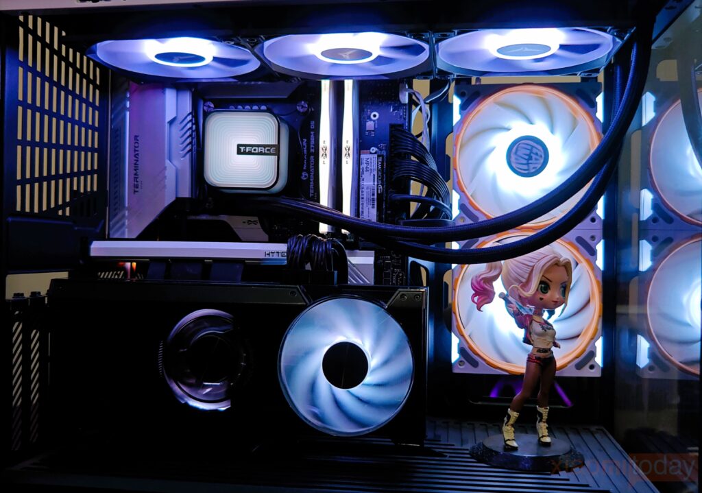 TEAMGROUP has truly mastered the art of ARGB lighting, evident in its remarkable execution. The captivating ARGB lighting effect showcased in both the water block and fan is nothing short of mesmerizing. Each individual LED on the fans contributes to the overall allure, while the CPU and SSD blocks boast a pristine and uniform illumination. TEAMGROUP’s attention to detail and craftsmanship in its ARGB lighting design sets a new standard for visual appeal and sophistication.